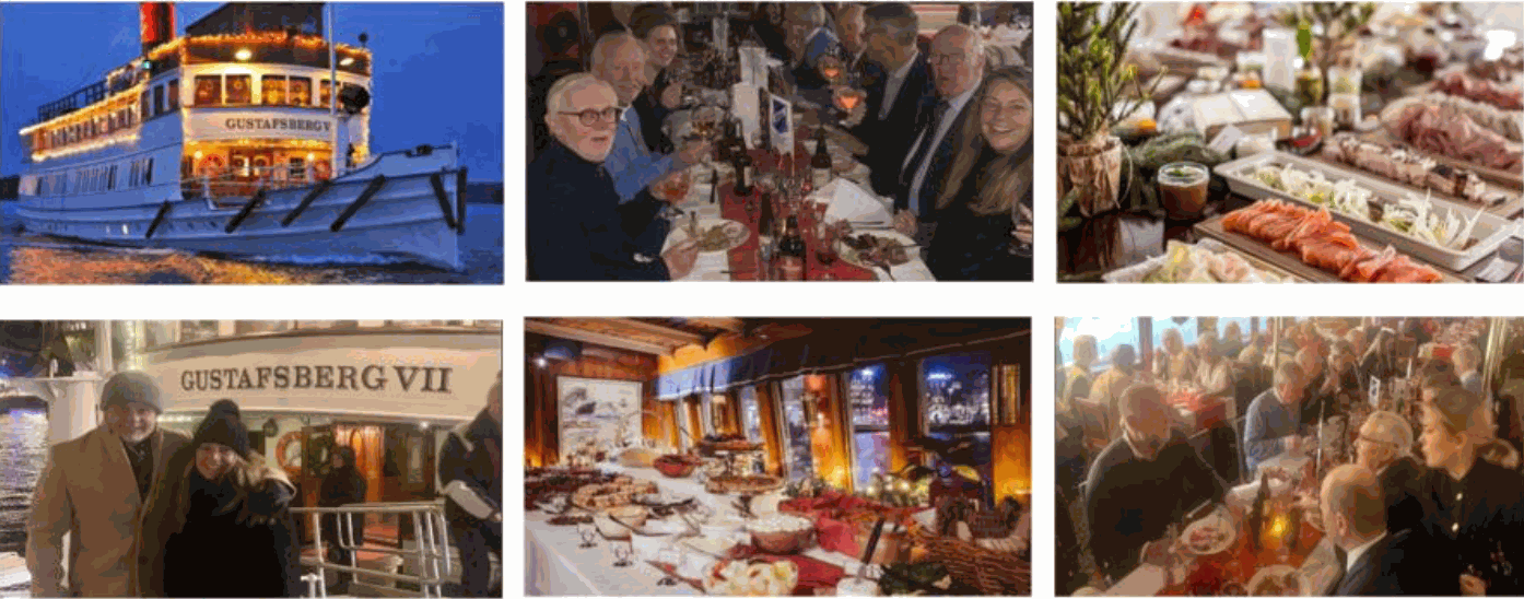 Welcome aboard on M/S Gustafsberg VII on Friday 15 December and enjoy a traditional Christmas lunch in the Stockholm archipelago at SKÅL Stockholm's annual Christmas lunch with a lovely classic Christmas table in beautiful surroundings!